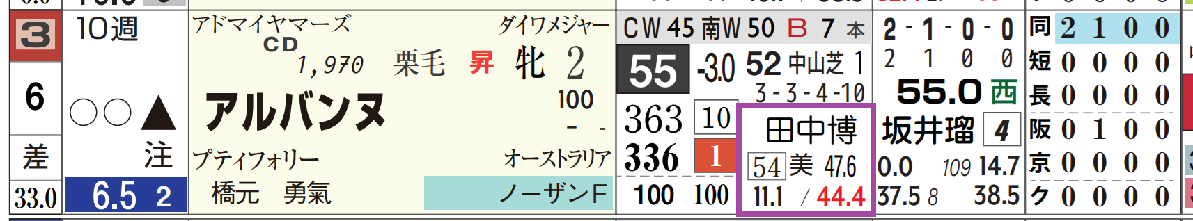 「ローテーション」=中10週、当週&1週前の「追切指数」=《45》《50》