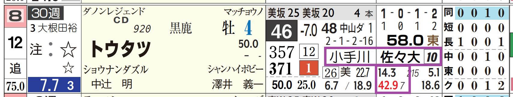 小手川厩舎&佐々木騎手のコンビは複勝率40%超えと好相性。