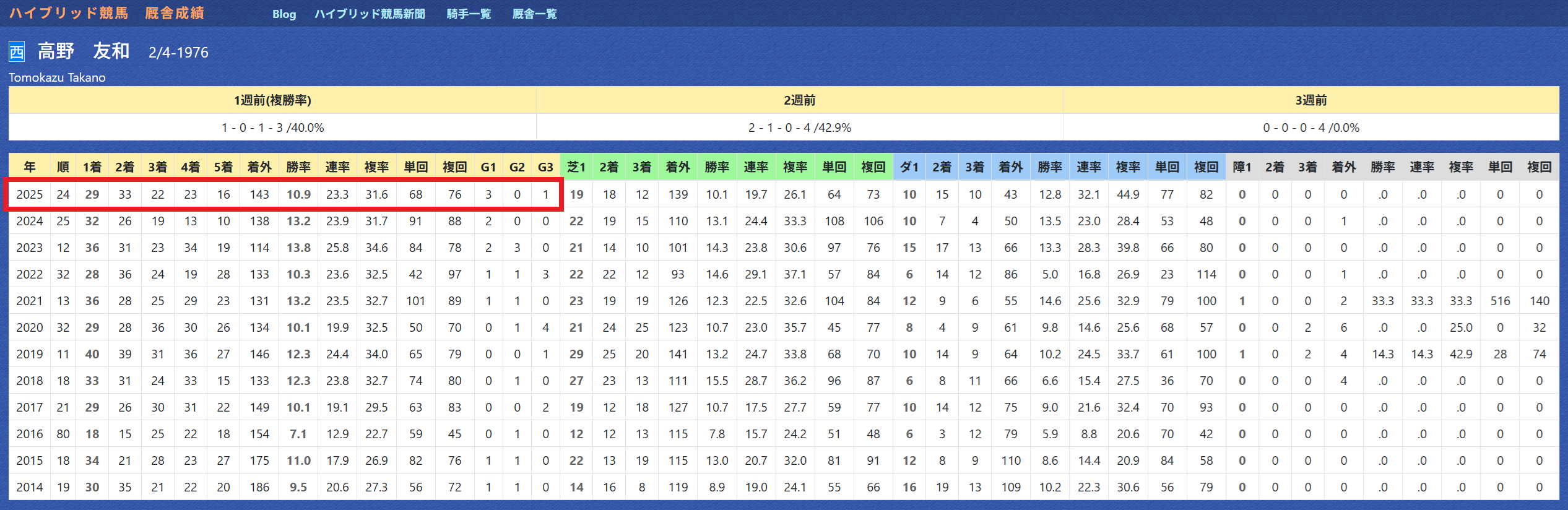 「厩舎の該当競馬場の成績」=勝ち数54位、勝率11.1%&複勝率44.4%
