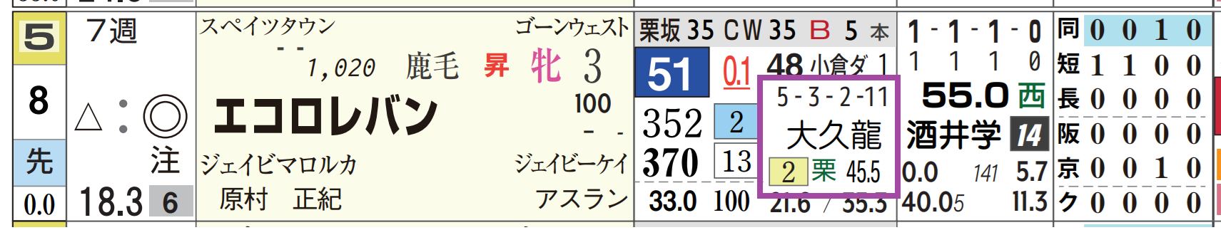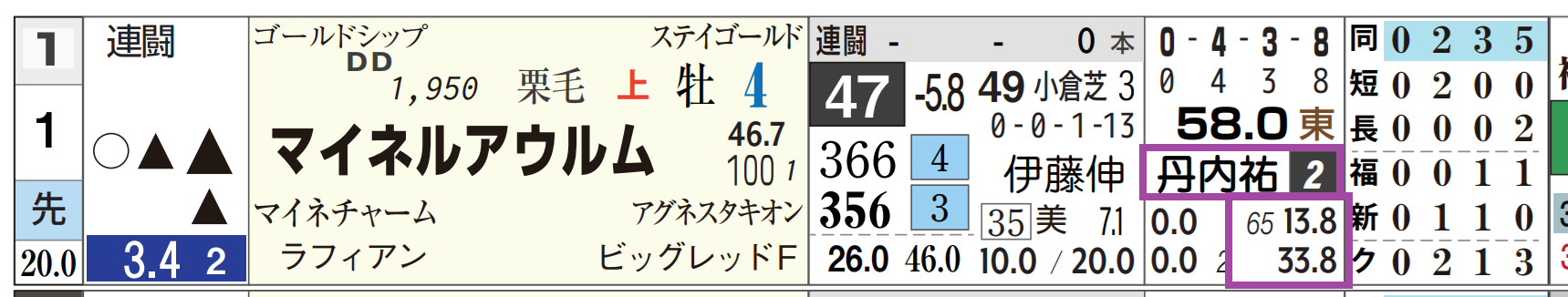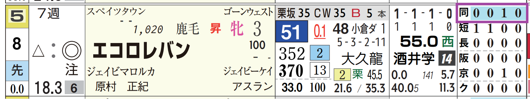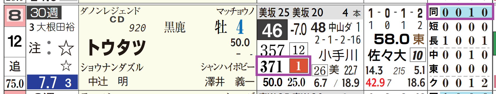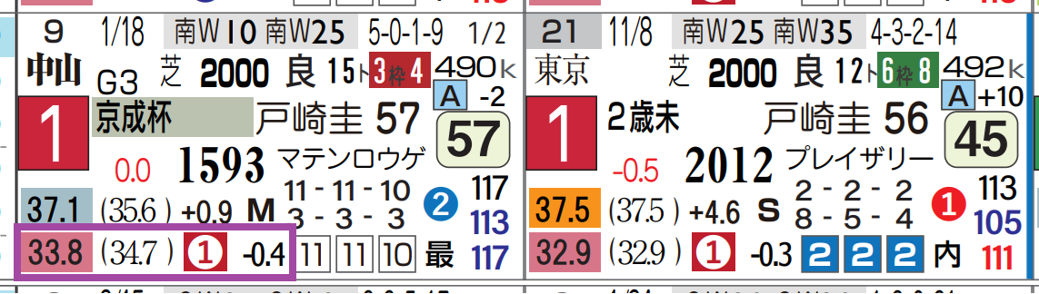 「推定後半3ハロン」1位、「距離実績」=【0・0・1・0】