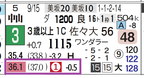上がり最速(上がり2位に0.5秒差)