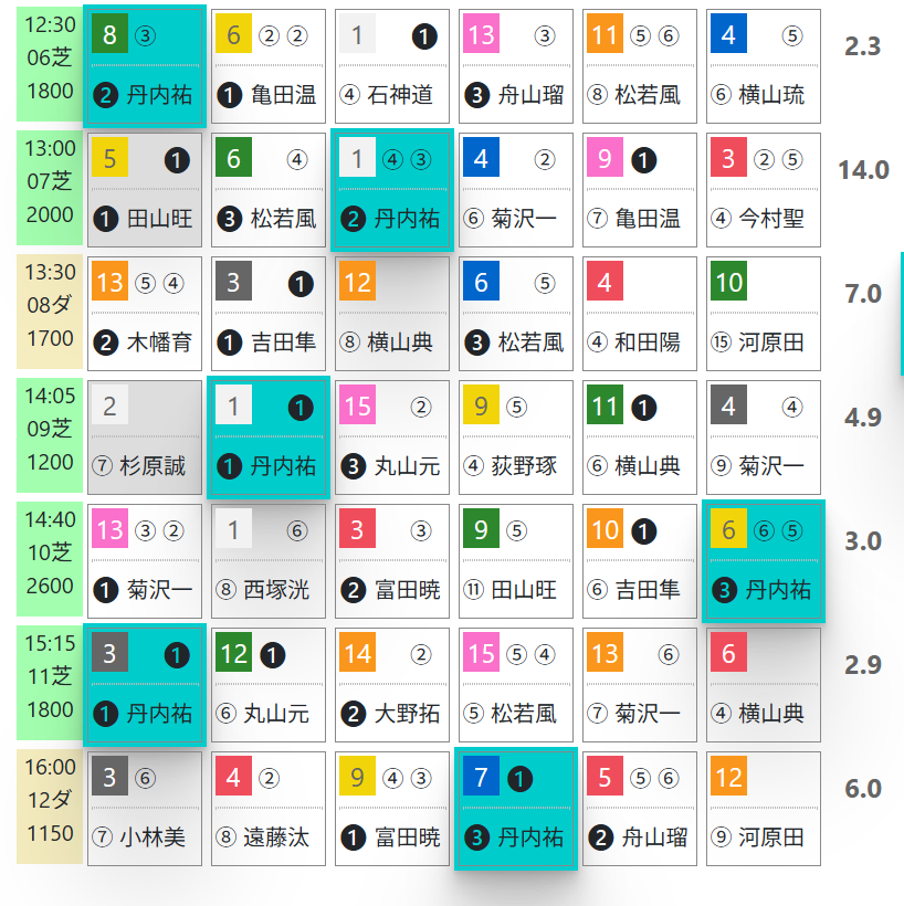 丹内騎手+「ハイブリッド指数」上位