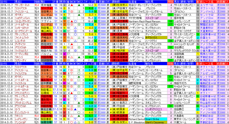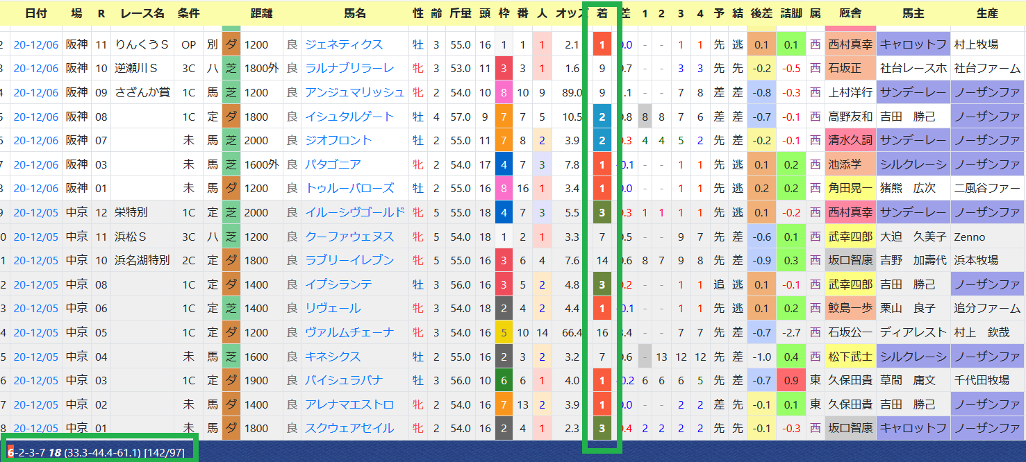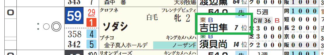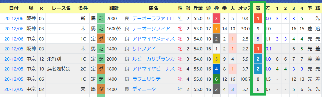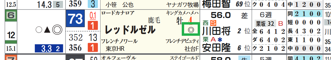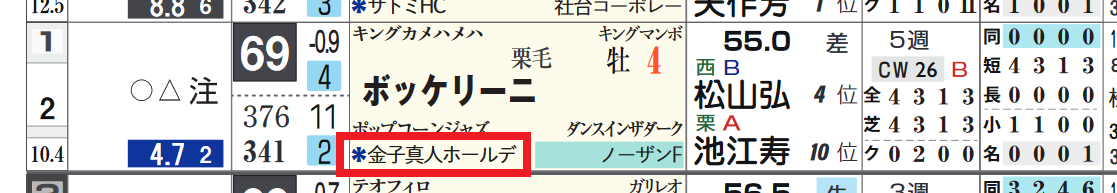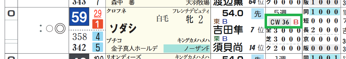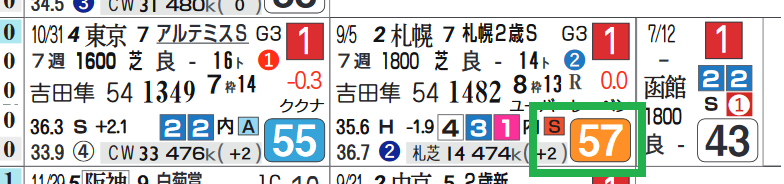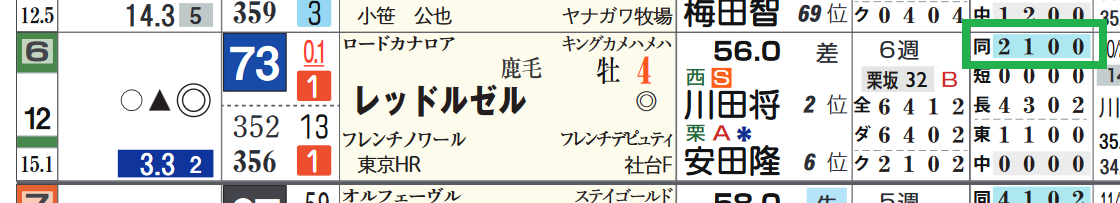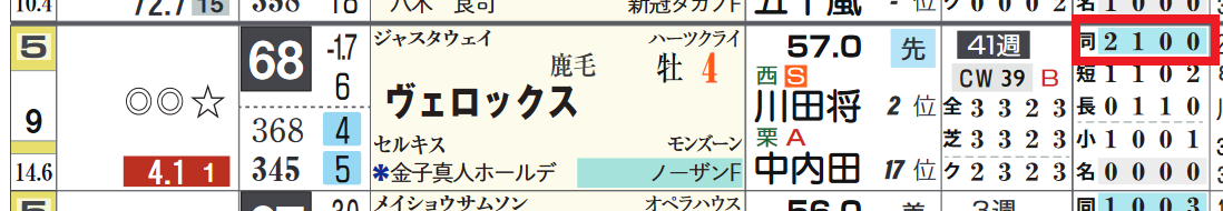 *近2走の過去走欄の右上部分