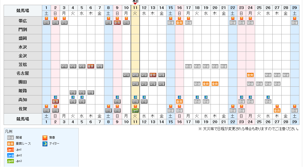 園田&高知競馬のスケジュール