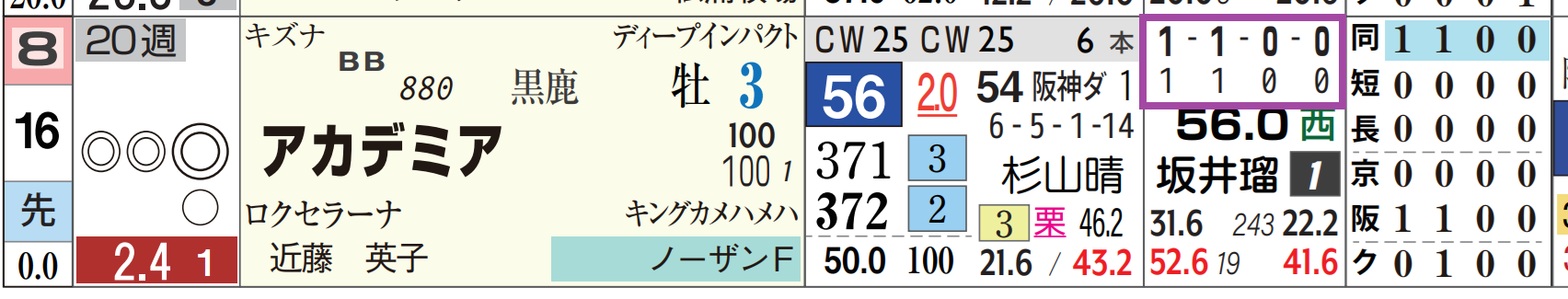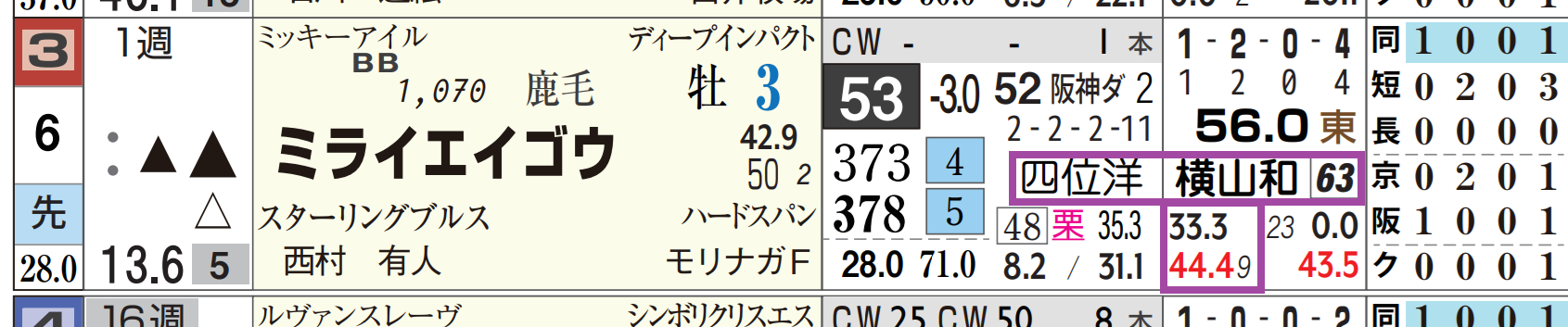 四位厩舎&横山和騎手のコンビは複勝率40%超えと好相性。