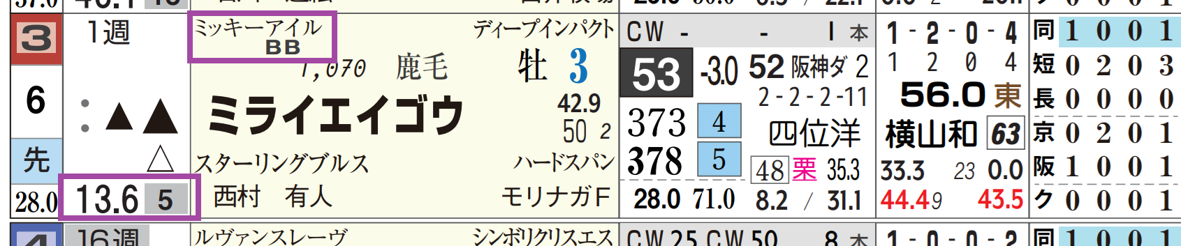 ⑥ミライエイゴウは2走前の初勝利の前走が1勝クラス勝ちレベル。