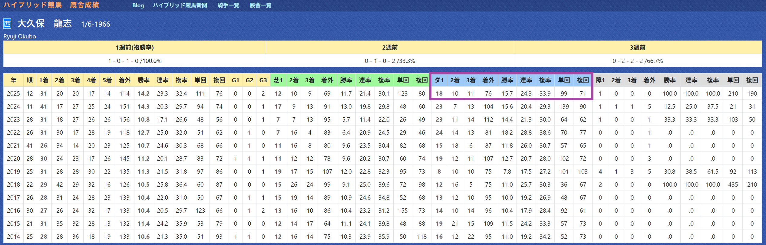 松山騎手は京都のダートの勝ち数が2位&複勝率40%超えと優秀。