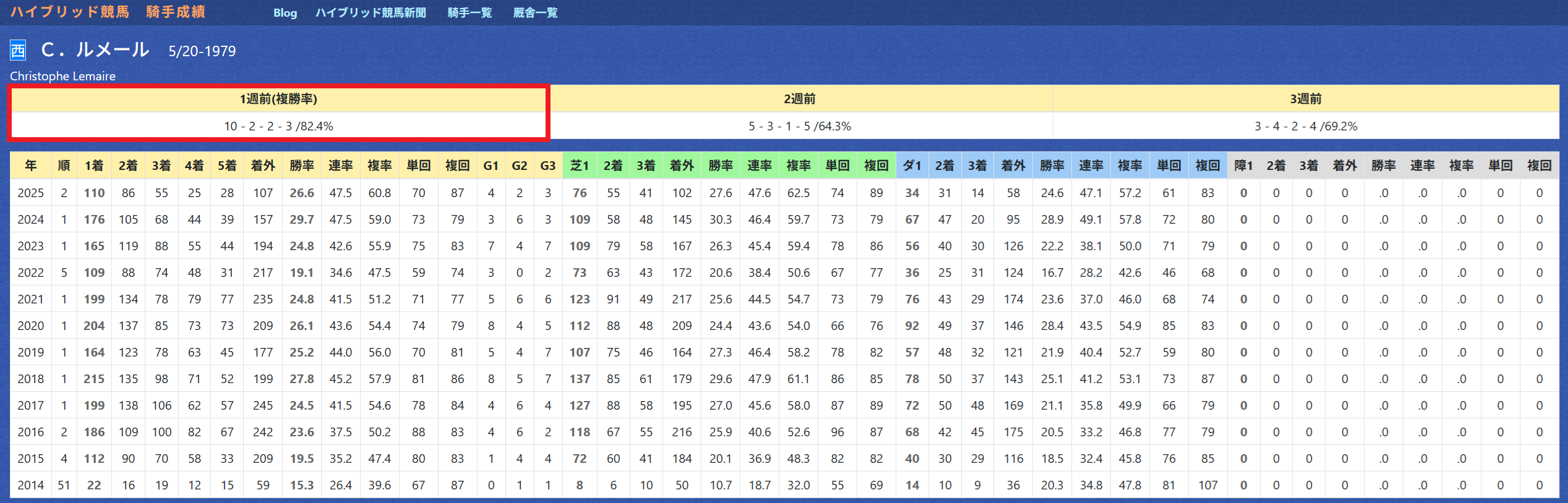 「騎手の該当競馬場の成績」=勝ち数1位、勝率34.9%&複勝率68.2%(235レース)