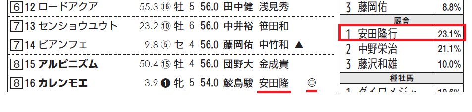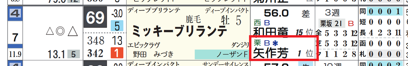 「リーディング順位」=3位、「厩舎評価」=《A》