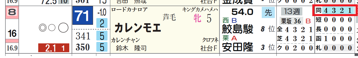 ⑯カレンモエは京阪杯、オーシャンSで2着。