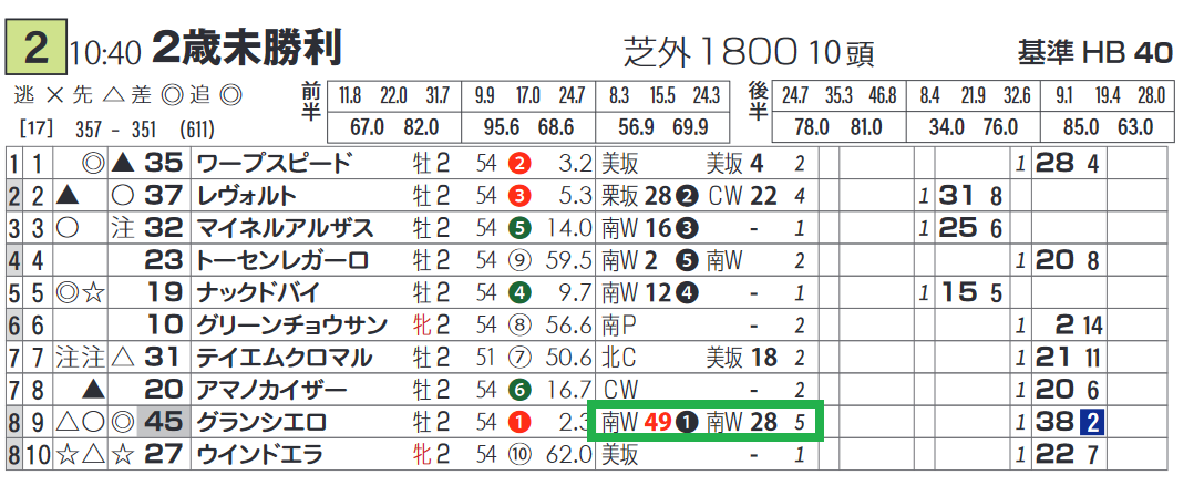 ⑨グランシエロは初戦がハイレベルな2着。