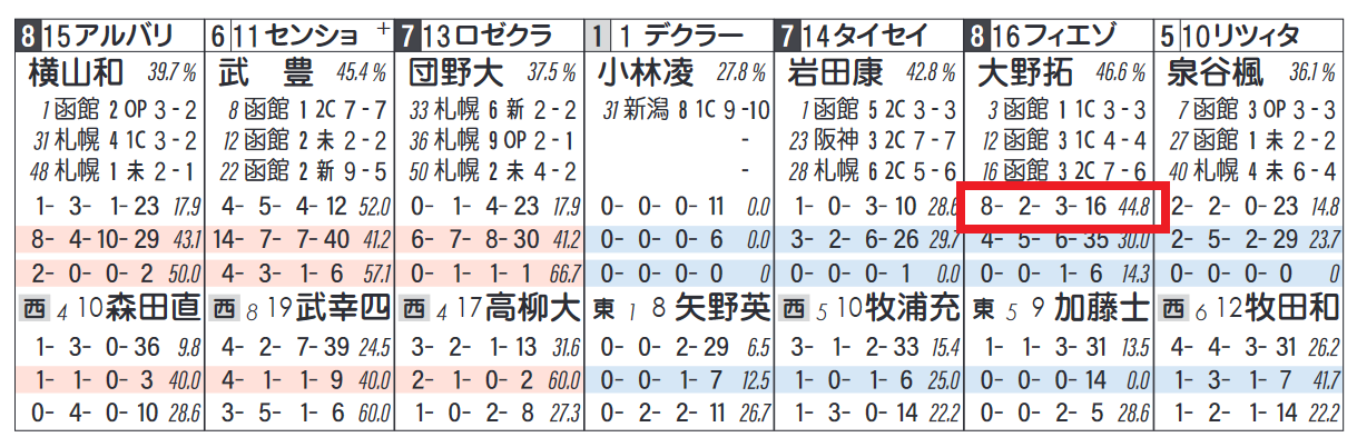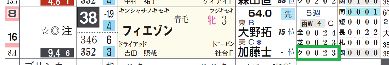 「近3週成績(芝・ダ別)」=【8・2・3・16】