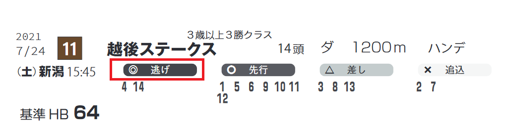 新潟ダート1200mは逃げ馬が有利。