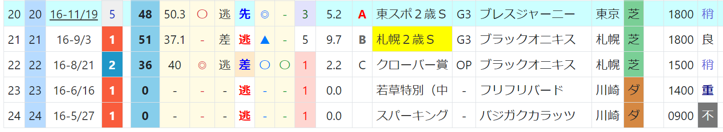 菱田騎手騎乗予定⇒(0.1.1.0)