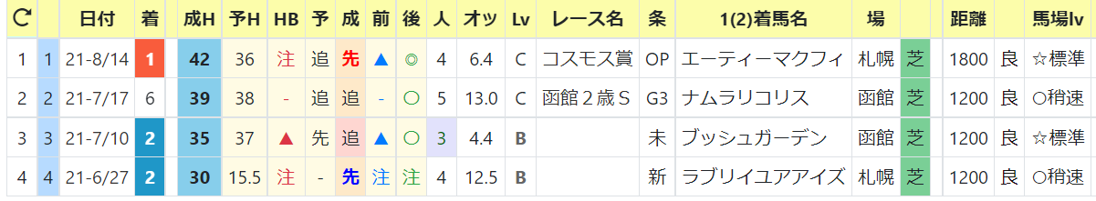 ①推定後半3ハロン1位馬の成績は(1.1.3.1)