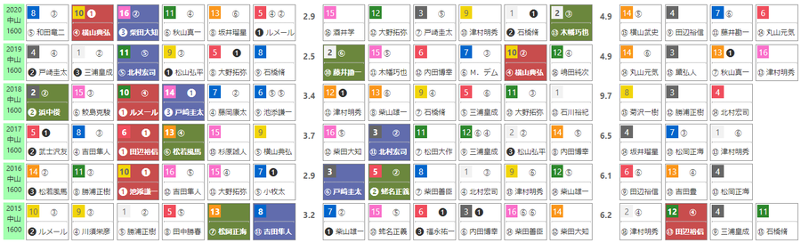 昨年は「推定前半3ハロン」1~3位がワン・ツー・スリー。2016~18年は「推定後半3ハロン」1位が3年連続して連対している。