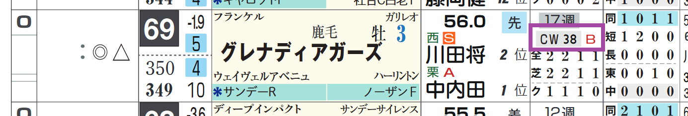 「追切指数」=《38》、「追切評価」=《B》