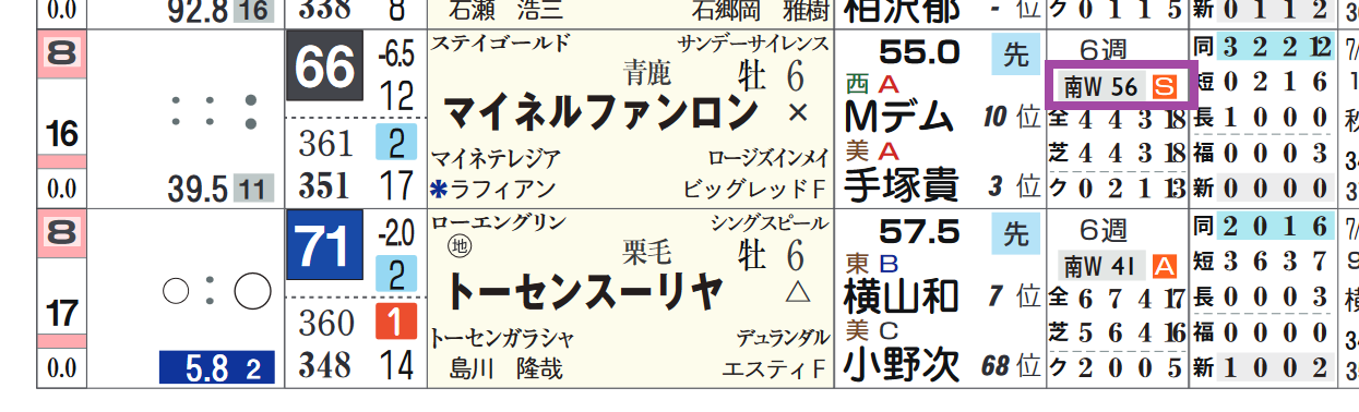 「追切指数」=《56》、「追切評価」=《S》