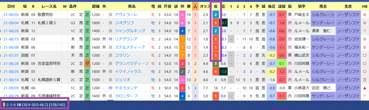 手塚厩舎は芝の複勝率が優秀。