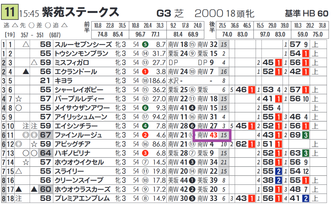 【「HB新聞(ライト版)のサンプル】近3年の勝ち馬は「推定前半3ハロン」3位以内。近7年で「推定後半3ハロン」5位以内が8連対している。
