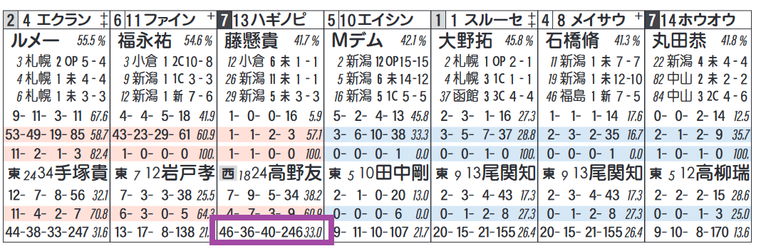【「HBリスト」のサンプル】・全場版 ・競場別版