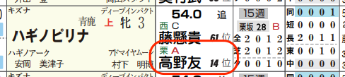「リーディング順位」=14位、「厩舎評価」=《A》