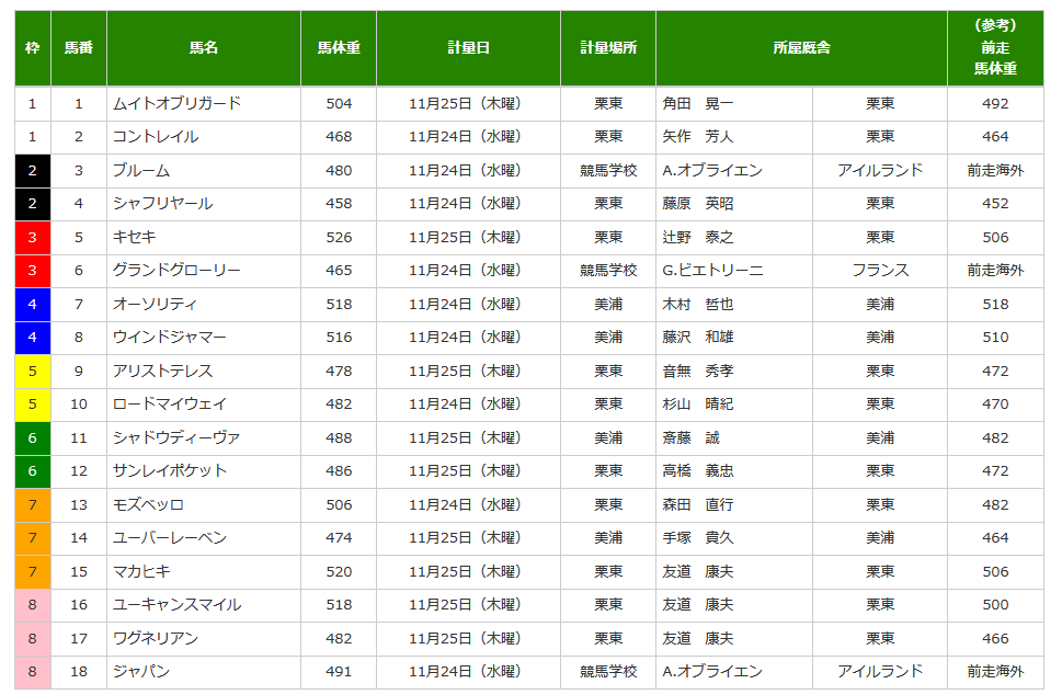 東京11R・ジャパンC(GⅠ)、芝2400m