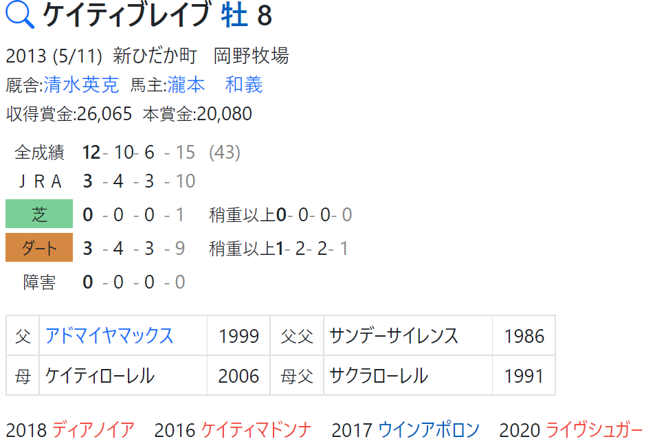 最高HB指数:76(2回) 2021/フェブラリーS2着,19/富士S1着
