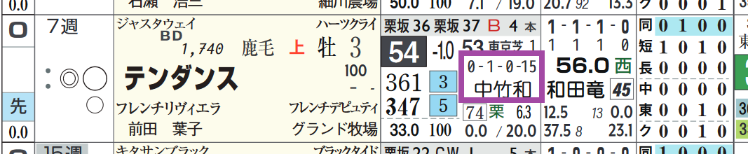 中竹厩舎は年末から不調気味なのがどうか。「近4開催の厩舎成績」=【0・1・0・15】