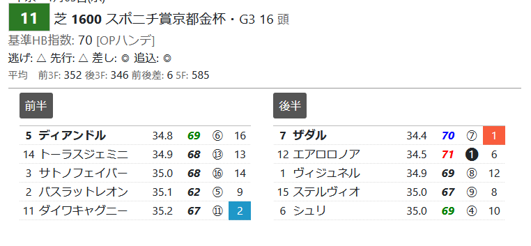 「推定後半3ハロン」1位=⑦ザダル