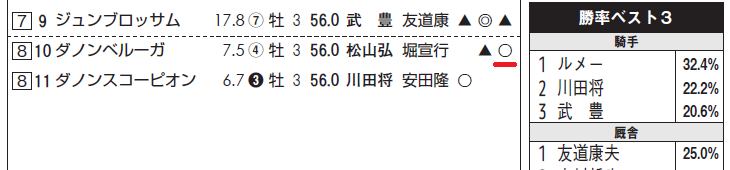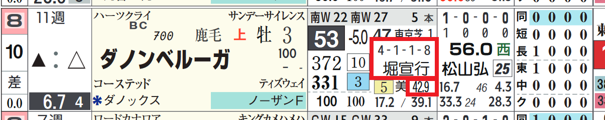 堀厩舎は近4開催で複勝率40%超えと上々。