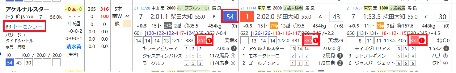 ⑩ダノンベルーガは新馬戦が断トツの上がりで快勝。