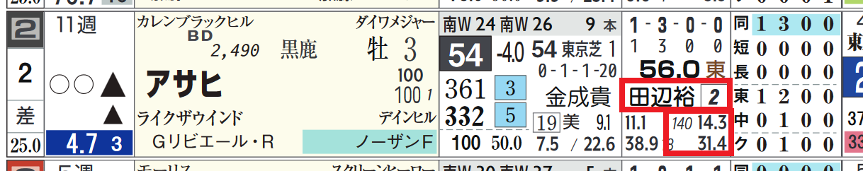 田辺騎手は東京の芝の勝ち数はルメール騎手に次いで多い。
