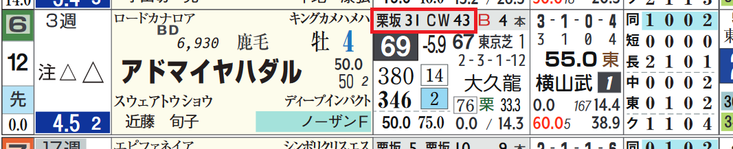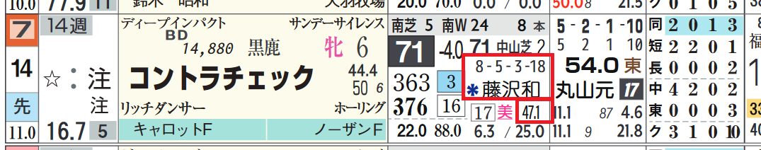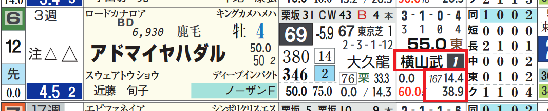 「インスタグラム」「ツイッター」に書いた通り、藤沢和厩舎は先週は複勝率61.5%のハイアベレージ。