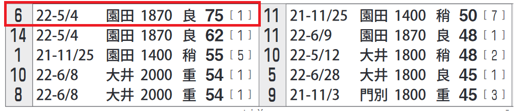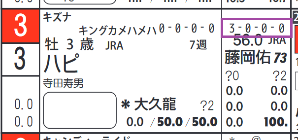 「騎手の該当競馬場の成績」=勝ち数73位、勝率0.0%&複勝率50.0%(4レース)