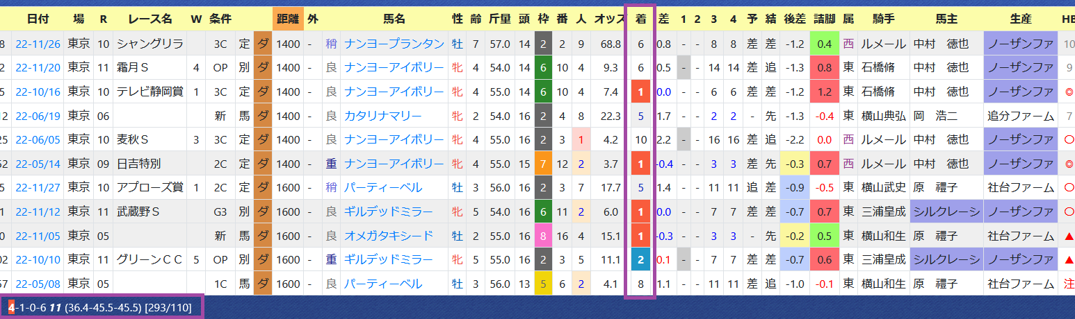 東京ダートの成績