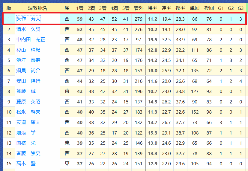 2023年01月03日 【データ分析】矢作芳人厩舎 【矢作芳人厩舎】2022年の厩舎リーディングを獲得。昨年の厩舎リーディング5年連続して30勝以上、リーディング3位以内。年度別成績→トップページからログイン→「HBビューワ」→「厩舎成績」※会員登録(無料)で利用可能⇒「インスタグラム」「ツイッター」にて他情報も更新中 「データ分析」カテゴリの最新記事
