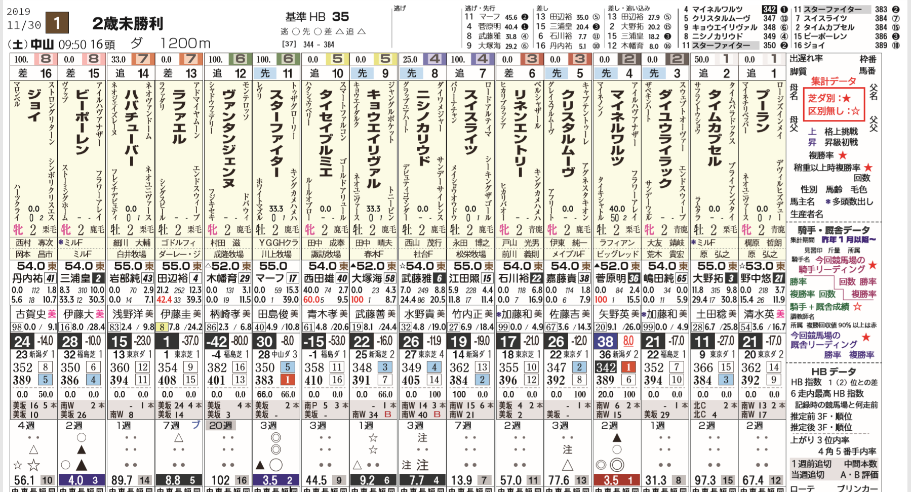 まずこちらのレースで説明させて頂きますので出走表をご覧ください。
