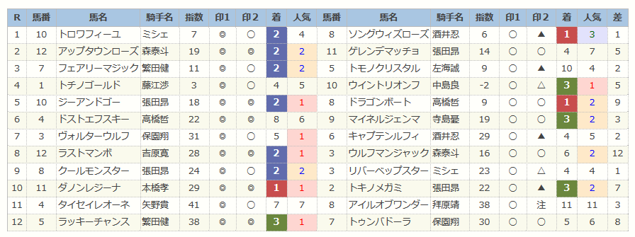 モズアスコットは根岸Sで今回のメンバーでは最先着、上がり34秒台をマーク、「ハイブリッド指数」=《77》をマーク。
