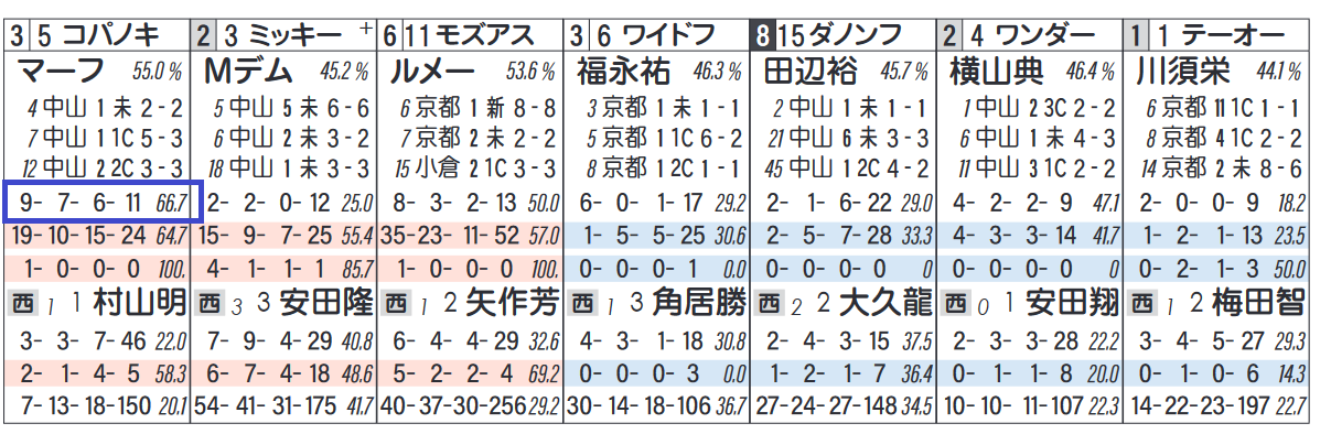 「インスタグラム」「ツイッター」に書いた通り、3枠が3勝でトップ、1枠&2枠も連対率30%と高い。内枠有利の傾向。