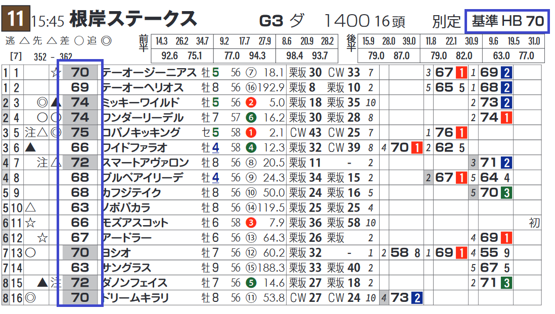⇒上部の「場名」をクリックした後、「レース番号」をクリック
