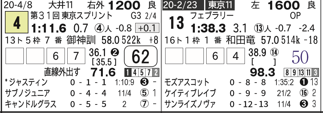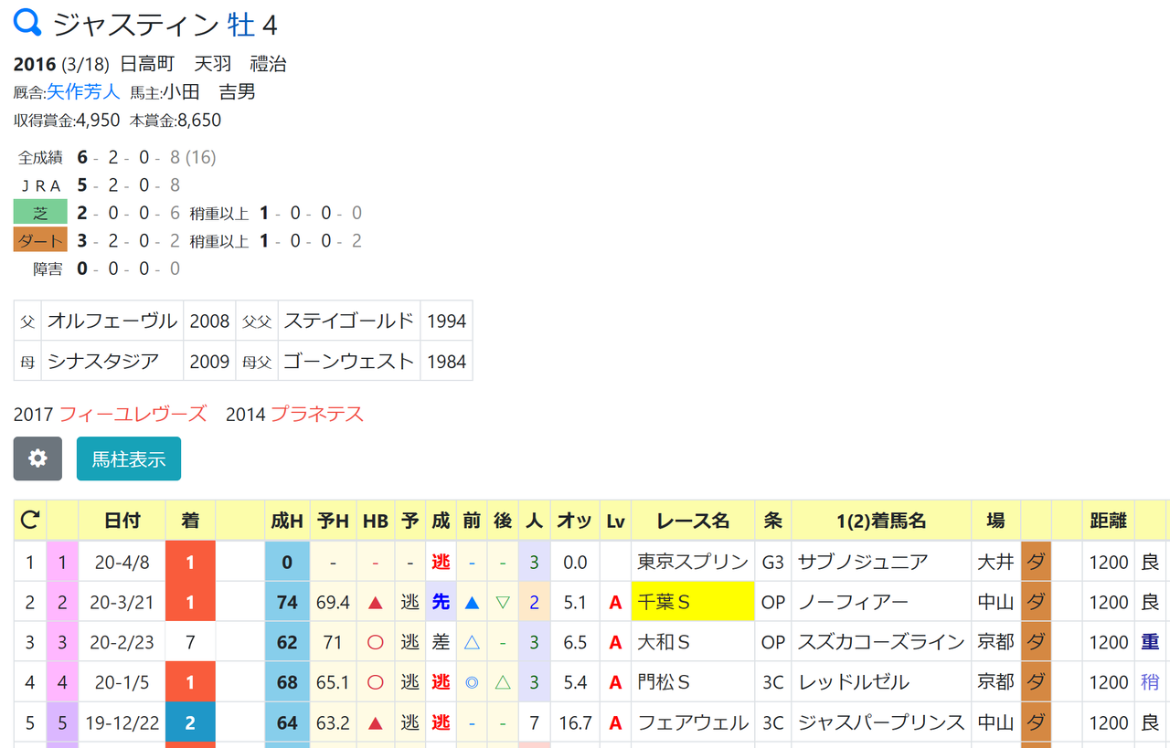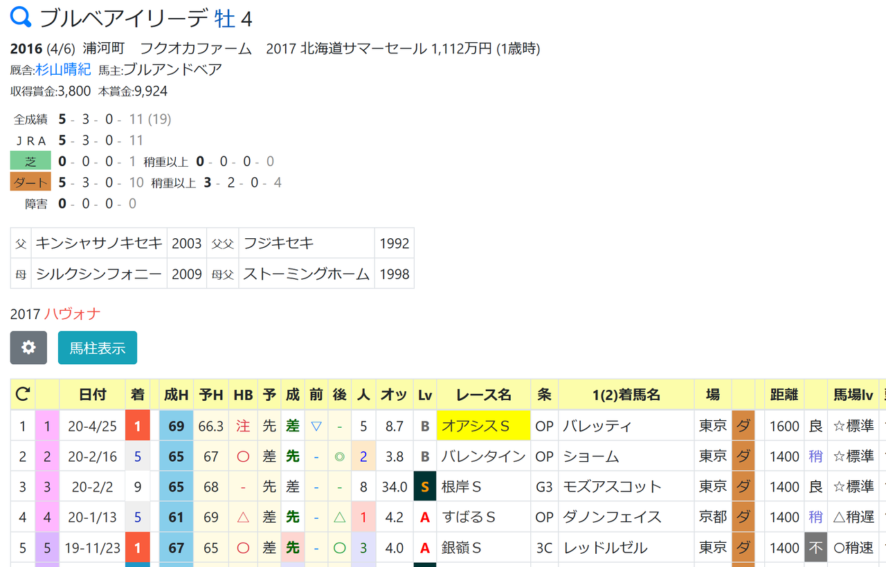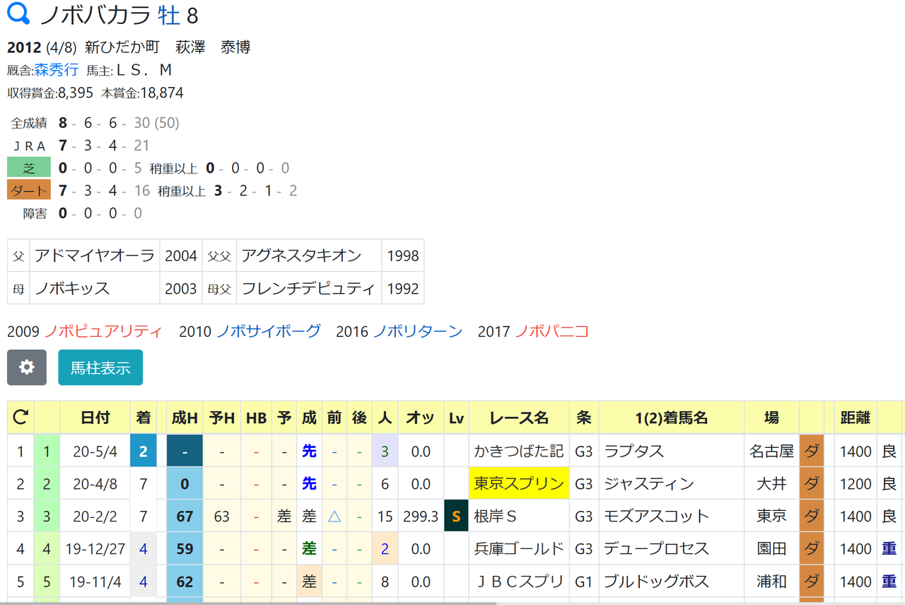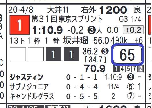HB指数58は2018/3着だったコズミックフォースより1高い指数