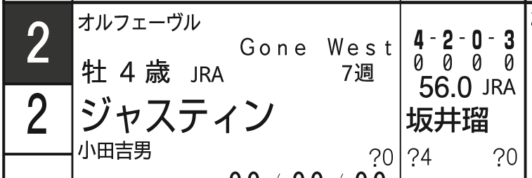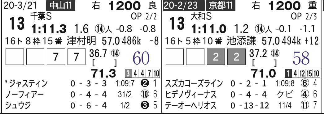 指数71は去年の4着馬サートゥルナーリアと同指数