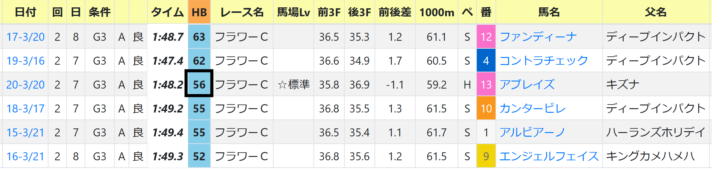 前後半36秒2-37秒3、前傾1秒1のハイペースではあるが、直線が平坦なコースだから、逃げ&先行馬が簡単には止まらない。