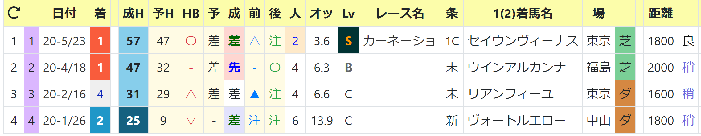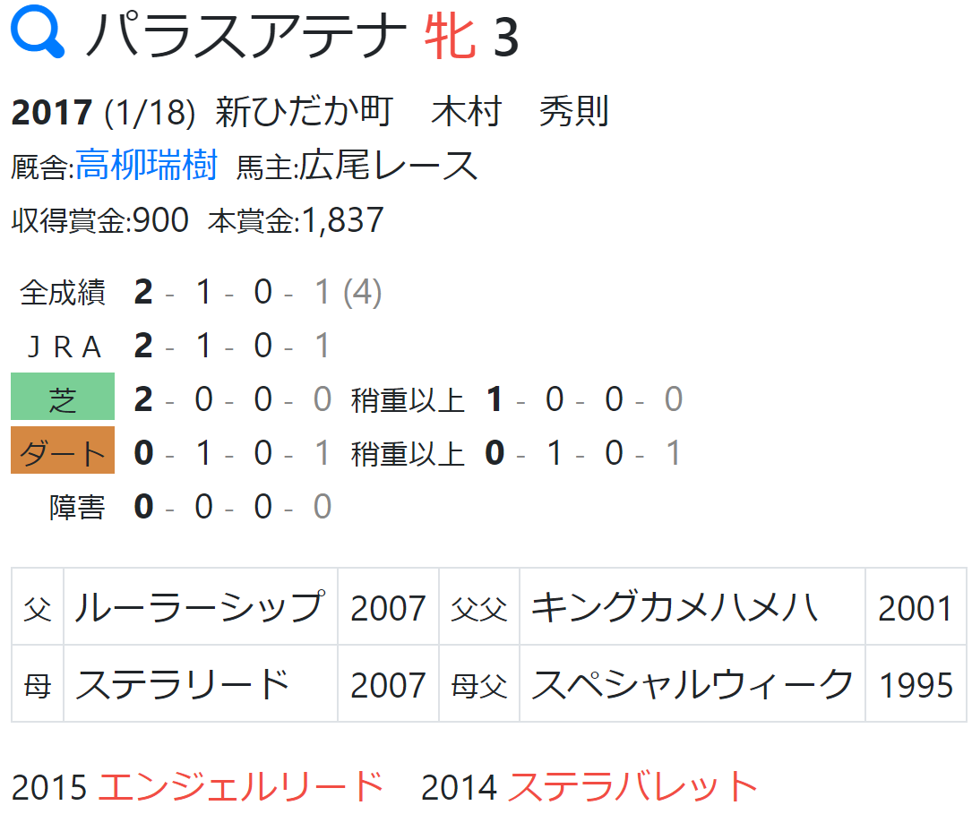 パラスアテナは未勝利戦、カーネーションCを連勝。