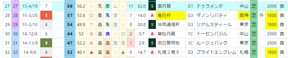 過去勝ち馬の前走HB指数+制覇までの近4走を見ると