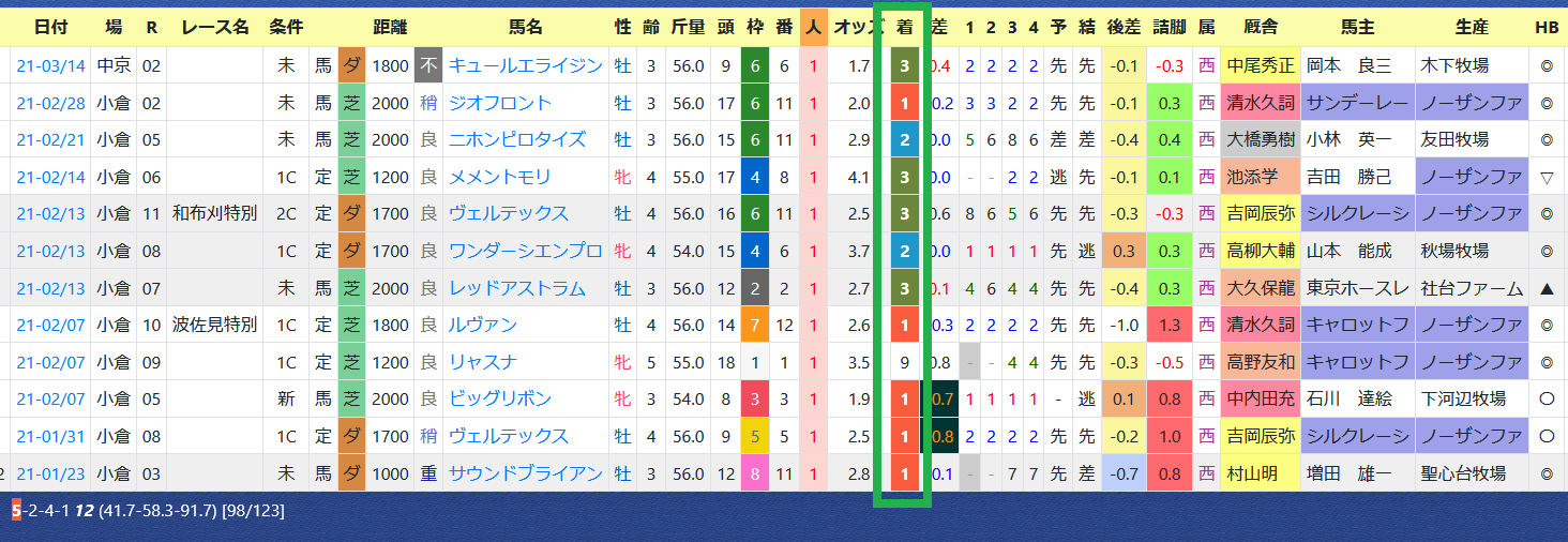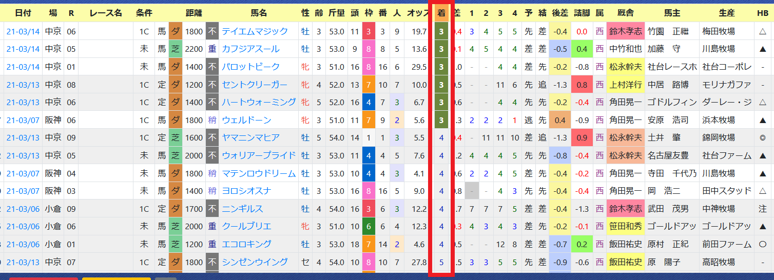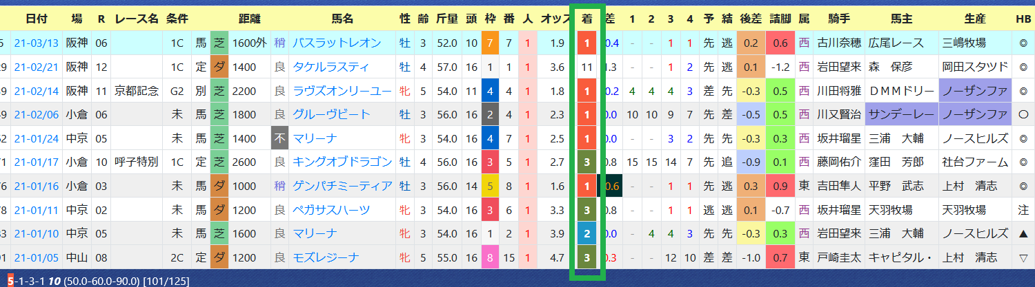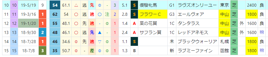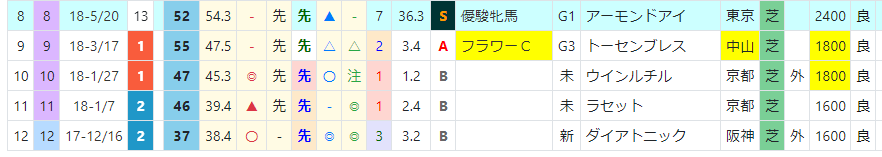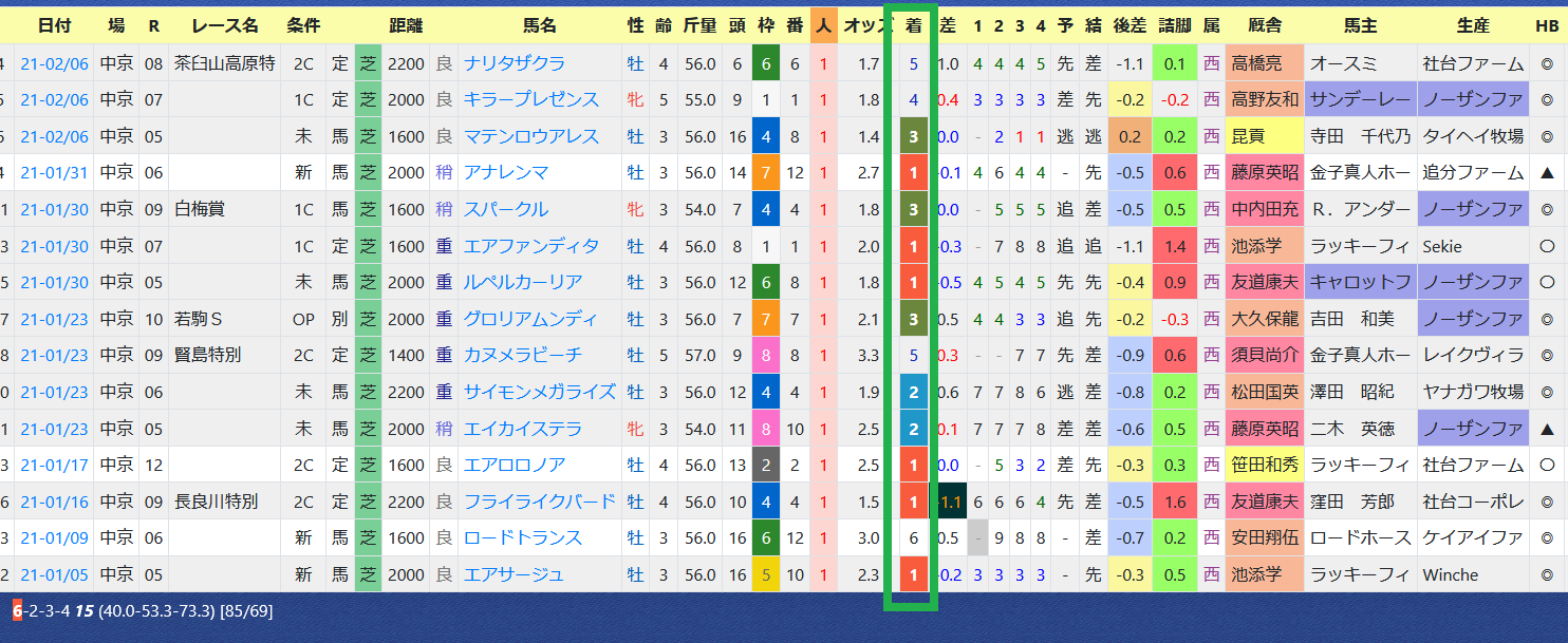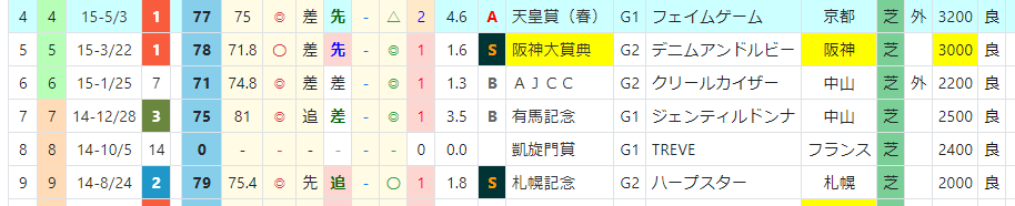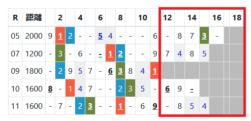 近5年の連対馬はすべて「推定後半3ハロン」6位以内。「推定後半3ハロン」位
