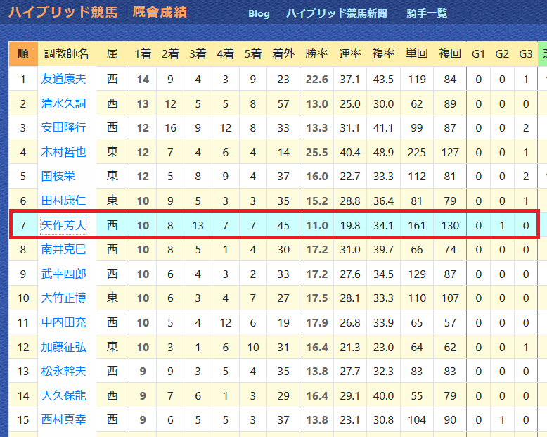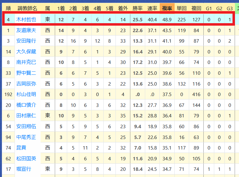 「ハイブリッド指数」1番手は3着以内が4回。「1ブロック」(=「ハイブリッド指数」6番手以内)のワン・ツー・スリーが4回ある。