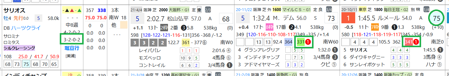 サリオスはオープン&重賞で7戦5連対、毎日王冠がハイレベル、3走前&2走前は上がり最速をマーク。