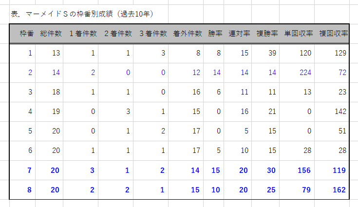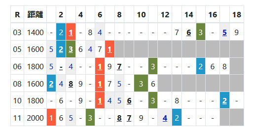 芝は7レースの勝ち馬すべては5~8枠。ダートも5レース中、5~8枠で計4勝。芝もダートも外枠が優勢。